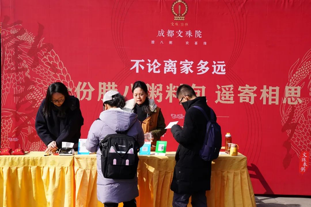 腊八节期间,文殊院将持续数日举行丰富多彩的供佛祈福法会、燃灯传灯法会、奉施腊八粥、讲经传戒、人文交流、文艺展演、主题文化体验等民俗活动。其中以奉施腊八粥为主要特色,向社会大众传递温情,与大家喜结欢喜缘。在2020年1月2日的己亥年腊八节期间,文殊院腊八节庙会以持续多年奉粥30万份、数千人次志工参与奉献等特色,冲上微博热搜榜。